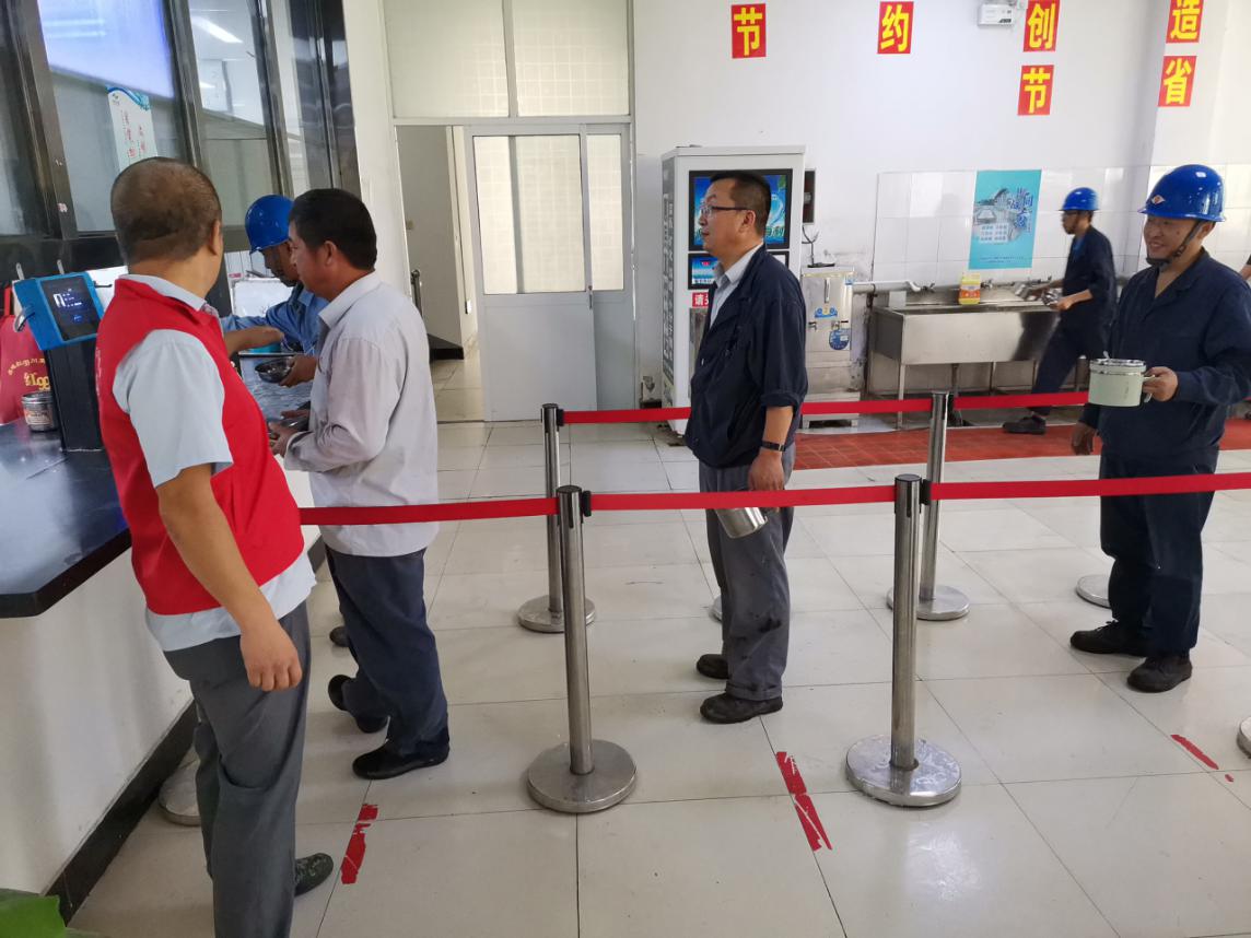 上午10:50 “文明餐桌志愿服務(wù)隊(duì)”成員已穿上紅馬甲,在職工餐廳集合,擺放好餐桌上的隔離擋板和椅子,規(guī)置好餐廳取餐窗口的警戒欄桿。11:00開(kāi)飯時(shí)間到,陸續(xù)有員工到達(dá),11:30各車(chē)間員工、外協(xié)檢修人員同時(shí)到達(dá)職工餐廳形成就餐高峰。通過(guò)“紅馬甲“的指引勸導(dǎo),職工們根據(jù)飯量不同,按需打菜,垃圾桶里剩菜剩飯明顯減少,取餐窗口排隊(duì)秩序井然,單人單桌就餐或雙人隔板就餐文明規(guī)范。