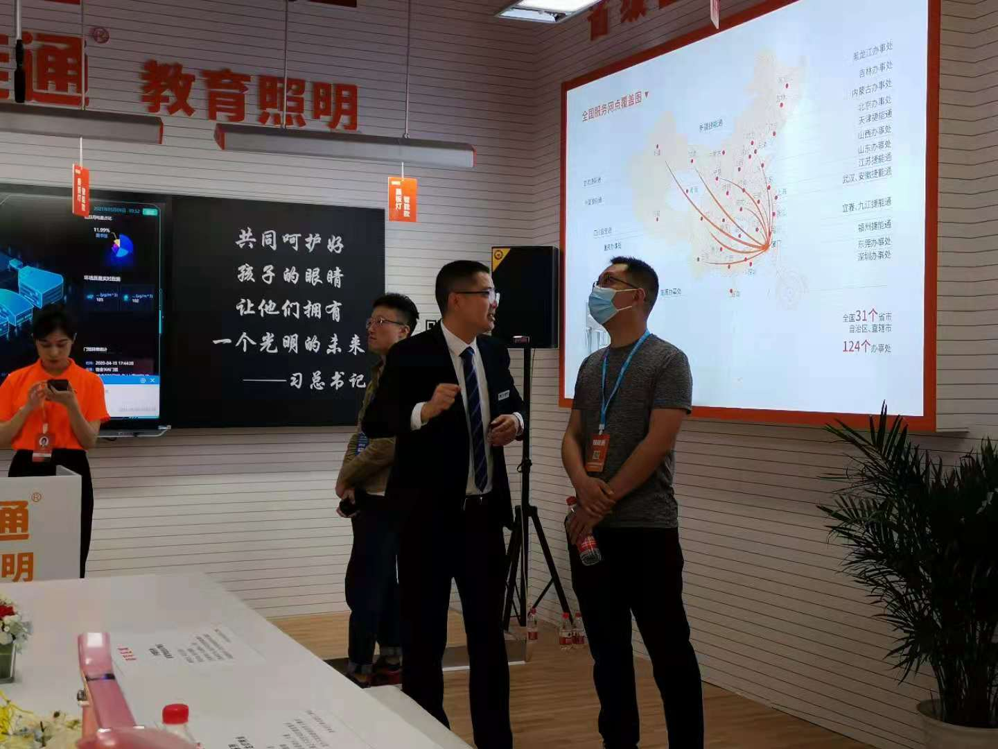 圖片8:科技公司李總聽(tīng)取捷能通工作人員相關(guān)護眼燈的介紹