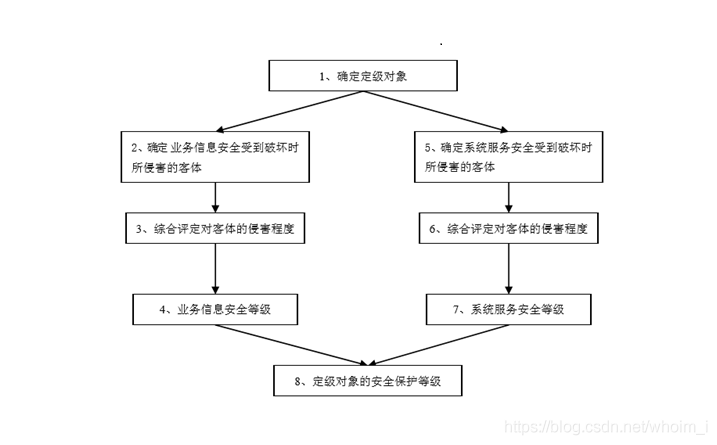 定級工作的主要內容包括:確定定級對象、初步確定等級、組織專(zhuān)家評審、主管部門(mén)審核、公安機關(guān)備案審查、最終確定等級。其流程圖如下: