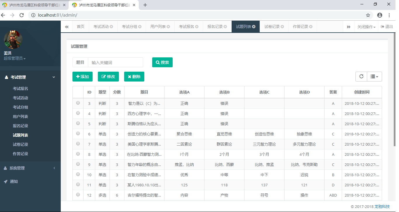 圖3 - 后臺:題目數據管理