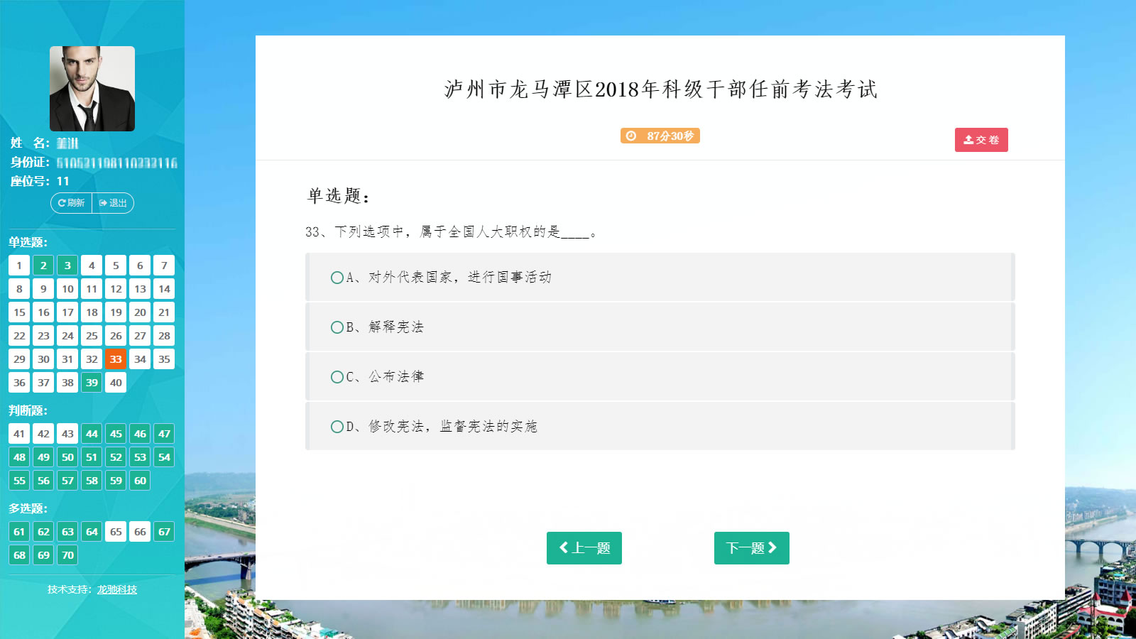 5、考試進(jìn)行中,考試電腦出現故障可更換電腦登錄繼續答題,已領(lǐng)取的試卷不會(huì )變更,答題記錄與進(jìn)度亦不受任何影響。