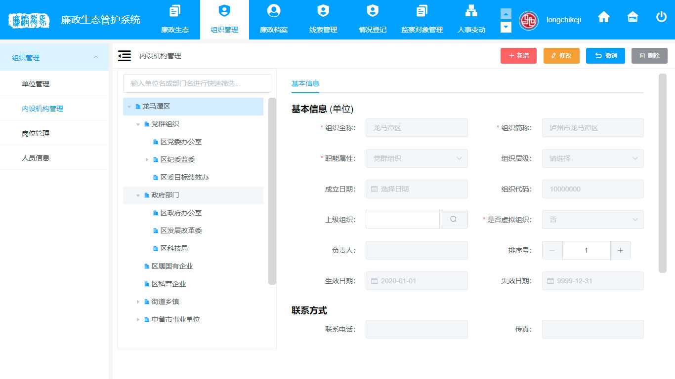廉政生態(tài)管護系統實(shí)現對黨員、干部、監察對象的廉政檔案進(jìn)行管理,對全區的黨風(fēng)廉政情況進(jìn)行“生態(tài)”監管。包括廉政檔案的錄入和管理,形成可視化森林生態(tài)??勺鰡挝缓蛡€(gè)人的廉政預警(顏色區別顯示)。對管理對象的信息進(jìn)行統計、匯總;對紀檢干部檔案進(jìn)行單獨管理和干部廉政審查等功能。滿(mǎn)足各級各類(lèi)人員使用:管理人員、紀委人員、人事人員,干部職工等。